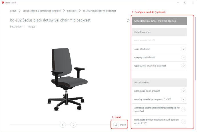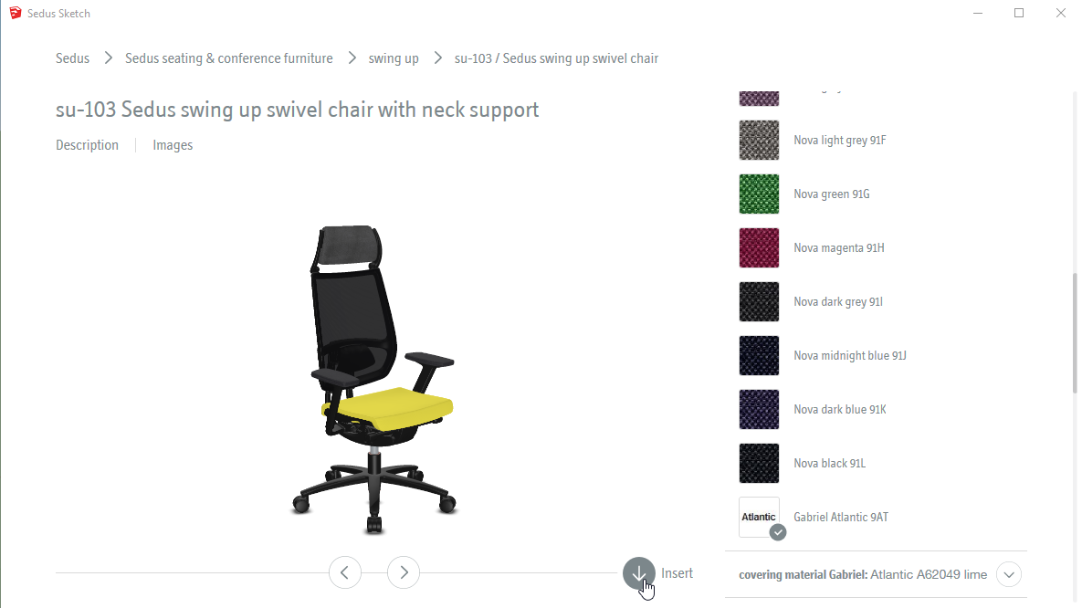 When you click on "Insert", the configured product is downloaded as a component and you can place it into the SketchUp drawing.