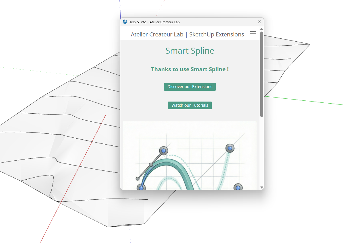 Description: Smart Spline is the missing link for fluid, organic modeling in SketchUp. Designed by Atelier Createur Lab for architects and makers, it removes the technical friction between your creative intent and 3D precision.