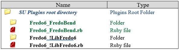 After the installation, you should have the following footprint in the Sketchup Plugins directory: